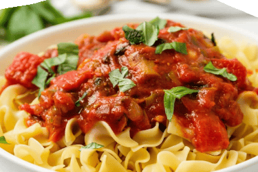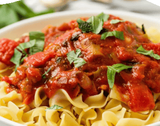 Noodles tossed in our housemade Marinara sauce with Tomatoes, Garlic, Onions, and Fresh Herbs