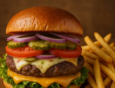 BBQ Sauce, Lettuce, Tomato, Bacon, Onion Rings, Pepper Jack & Cheddar Cheese
