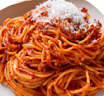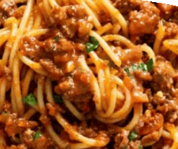 Noodles tossed in our slow cooked Meat sauce, made with Ground Beef, Tomatoes, Garlic, and Italian Spices