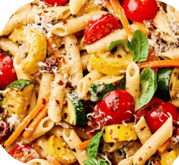 Pasta tossed with Seasonal Vegatables, Sauteed in Olive oil & Garlic