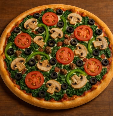 Spinach, Onion, Green Pepper, Mushroom, Black Olive, Tomato